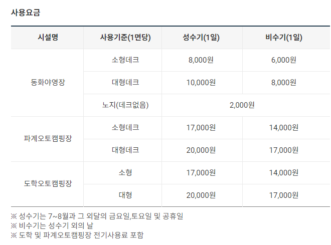 사용요금은 사설 오토캠핑장에 비해서는 저렴한 편이네요~ ㅎ