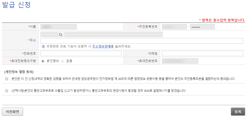 해외직구를 주문하기전에 미리 발급 받아 봤습니다.