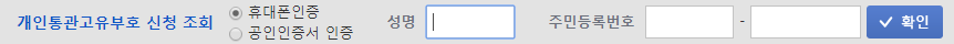 성명, 주민번호를 입력하고 확인 누르면 아래와 같은 팝업이 뜹니다.
