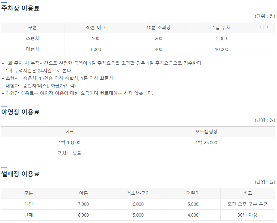 데크 이용료가 1박에 1만원이고 주차비가 소형차 기준 5천원이네요~