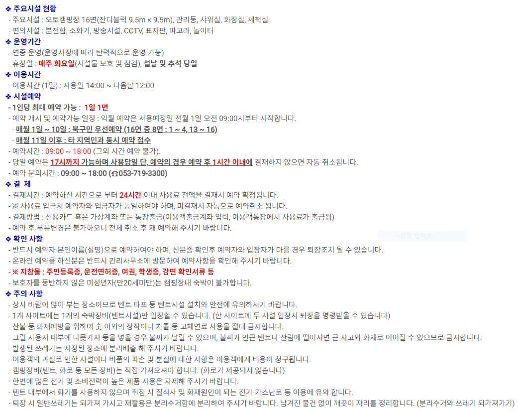 예약은 https://yeyak.daegu.go.kr/yeyak/camp/campListView.do?memId=B0000054 여기에 가입하고 예약하시면 됩니다.