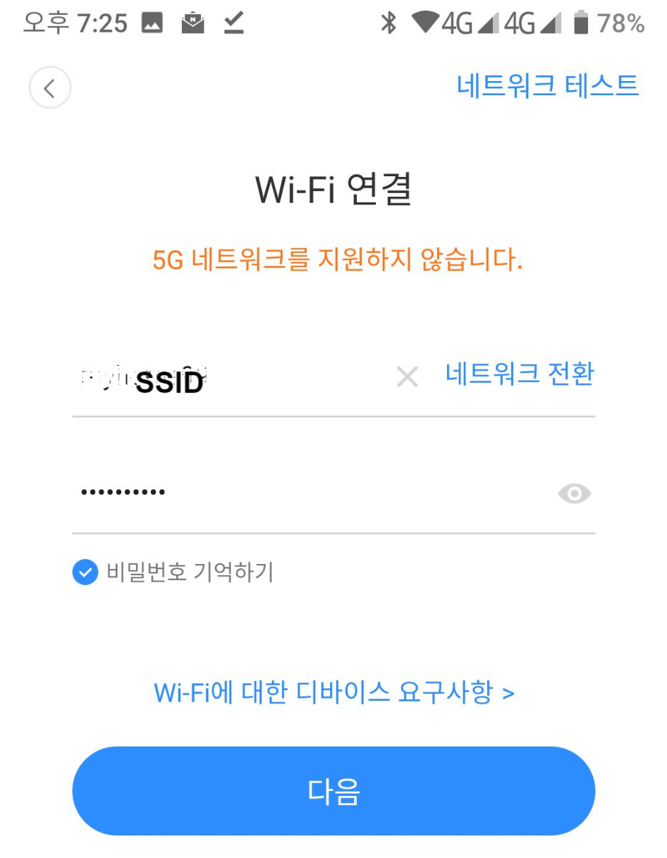와이파이 정보를 입력하고 다음을 누릅니다.