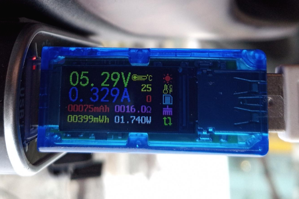 그리고 USB 소비전력테스트기로 측정해보았습니다.