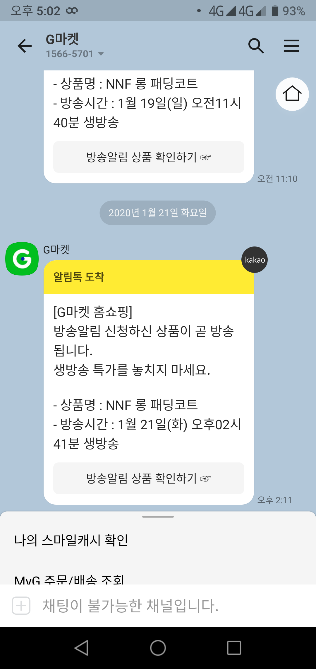 G마켓 홈쇼핑 방송알림 신청한게 있어서 거의 매일 알림톡이 오네요~
