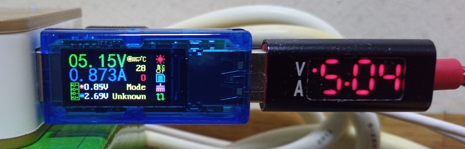왼쪽 측정기의 장점은 전원 연결이 끊어진 상태에서도 누적 전류량 값을 기억하고 있다는 점이 좋군요~