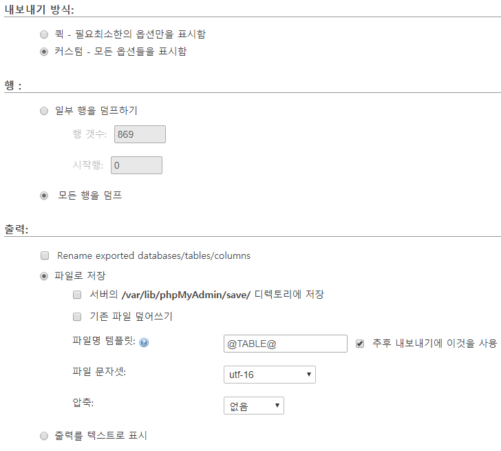 [phpMyAdmin] 한글 데이터 엑셀 csv 내보내기 깨짐 현상 본문