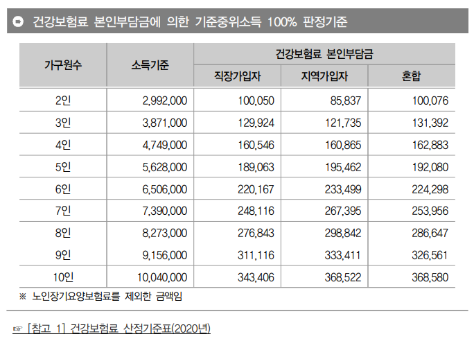 그런데 기준중위소득 100% 이하의 건강보험료 기준은 또 뭔지 인터넷에 신빙성이 있는 자료가 거의 안보이네요~
