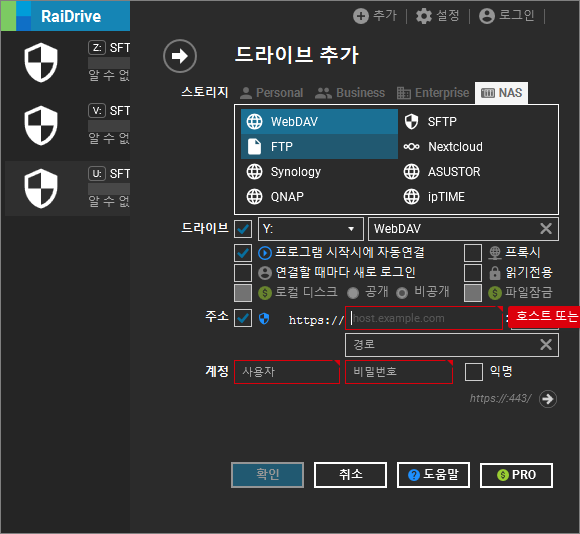RaiDrive 네트워크 드라이브 클라우드 지원 종류 본문