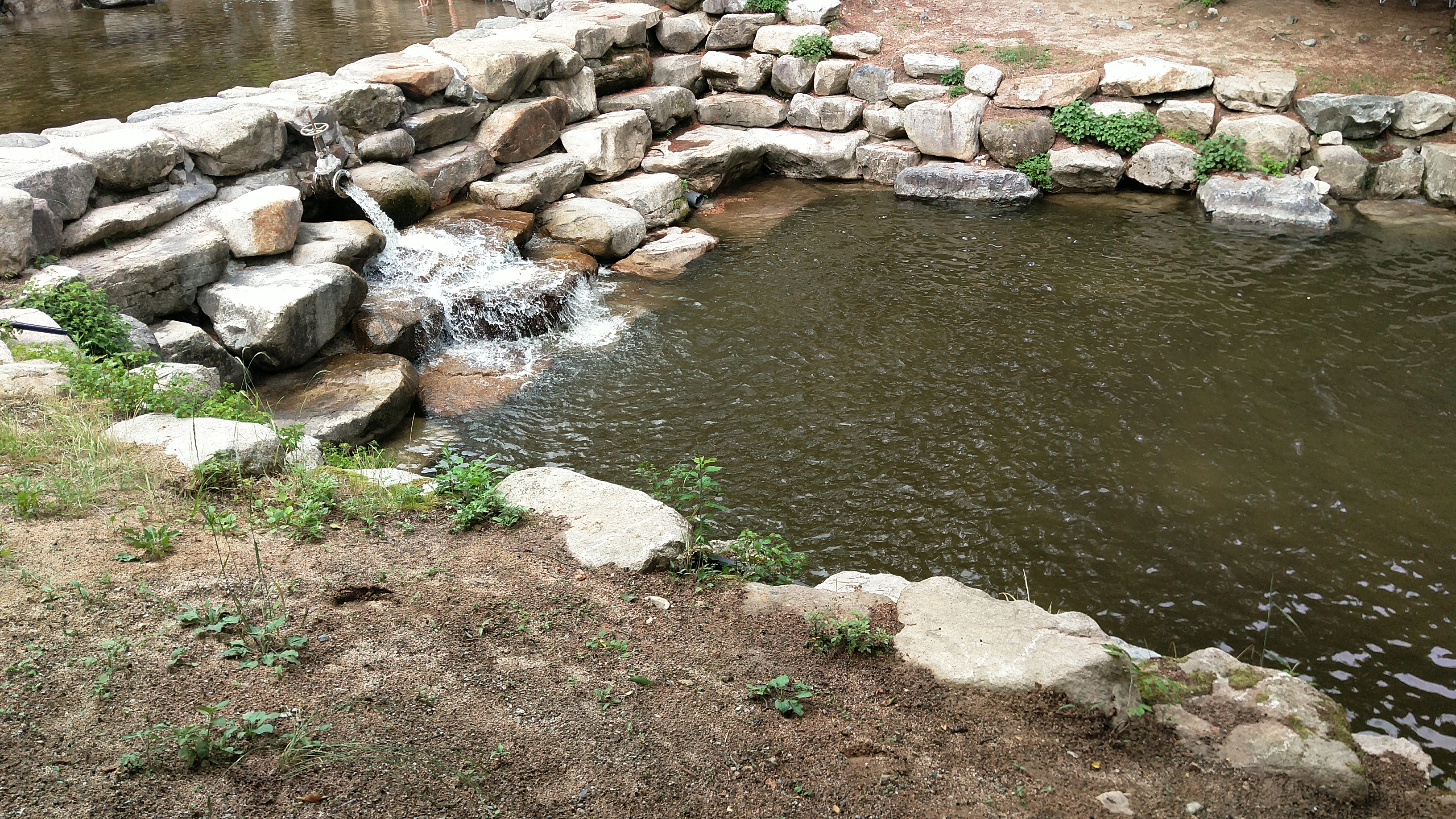 비가 오는 날씨임에도 아이들은 재미있게 물놀이를 하고있네요~