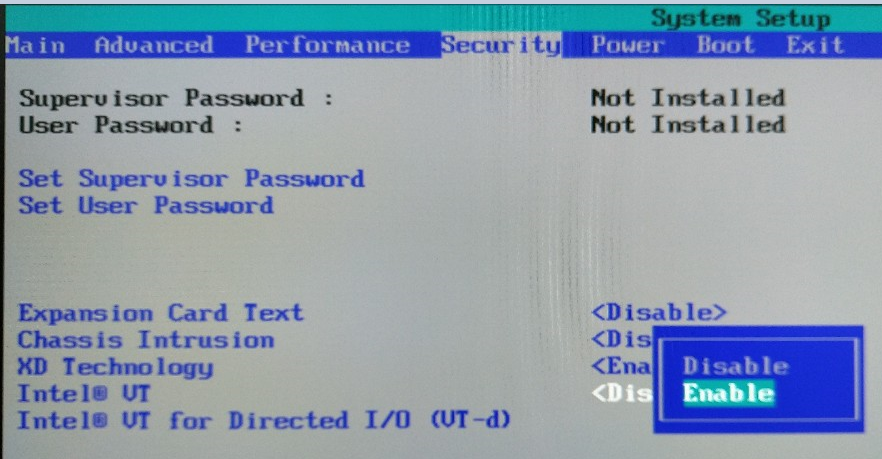 Intel VT Disable -> Enable 로 변경하고 저장합니다.