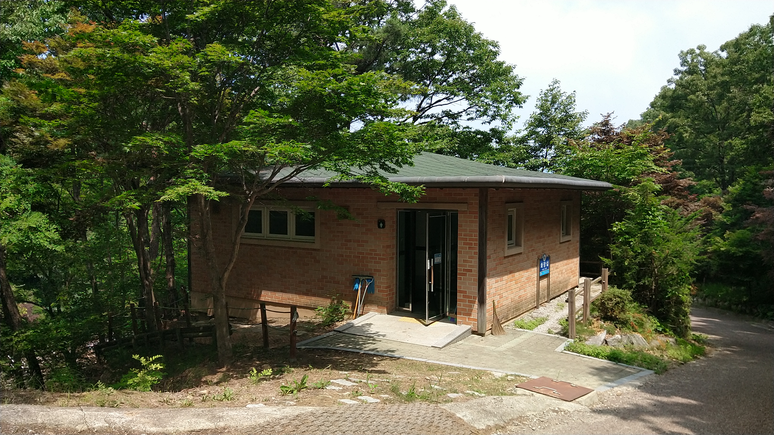 야영데크에서 멀지않은 화장실인데 밤에 엄청 무섭습니다~