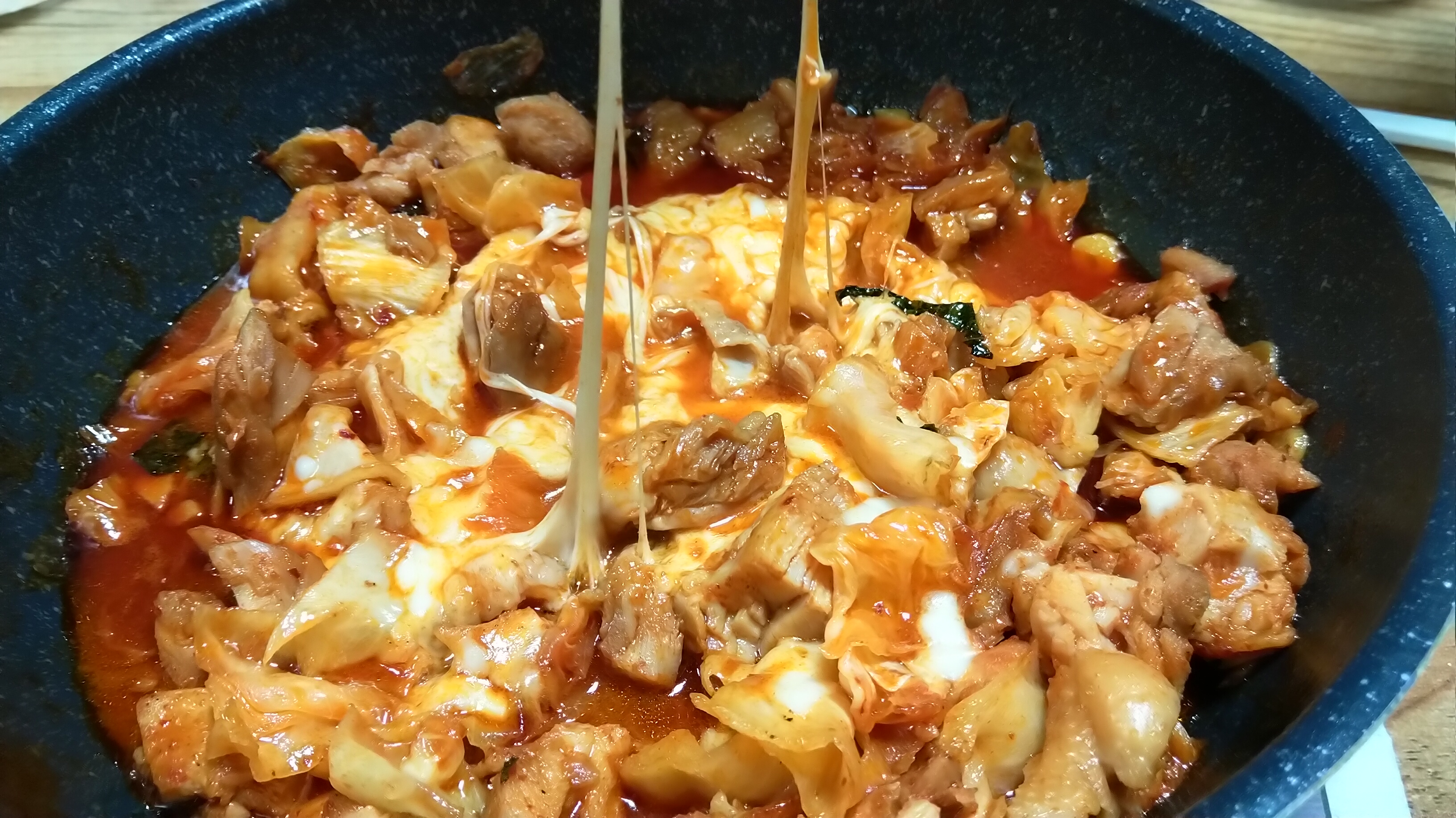 다시 방으로 돌아와서 닭갈비에 치즈를 넣어서 맛있게 먹었습니다~