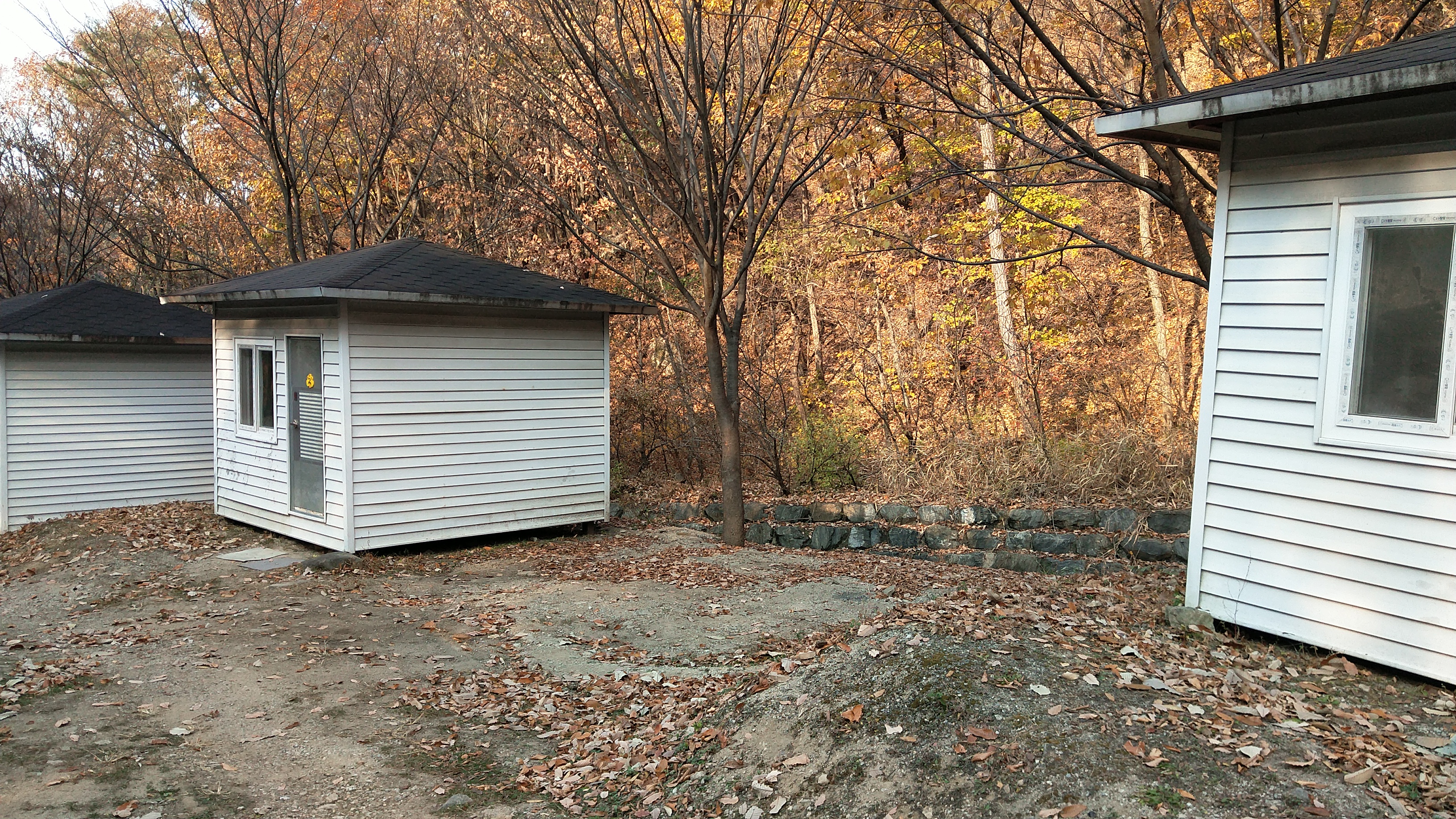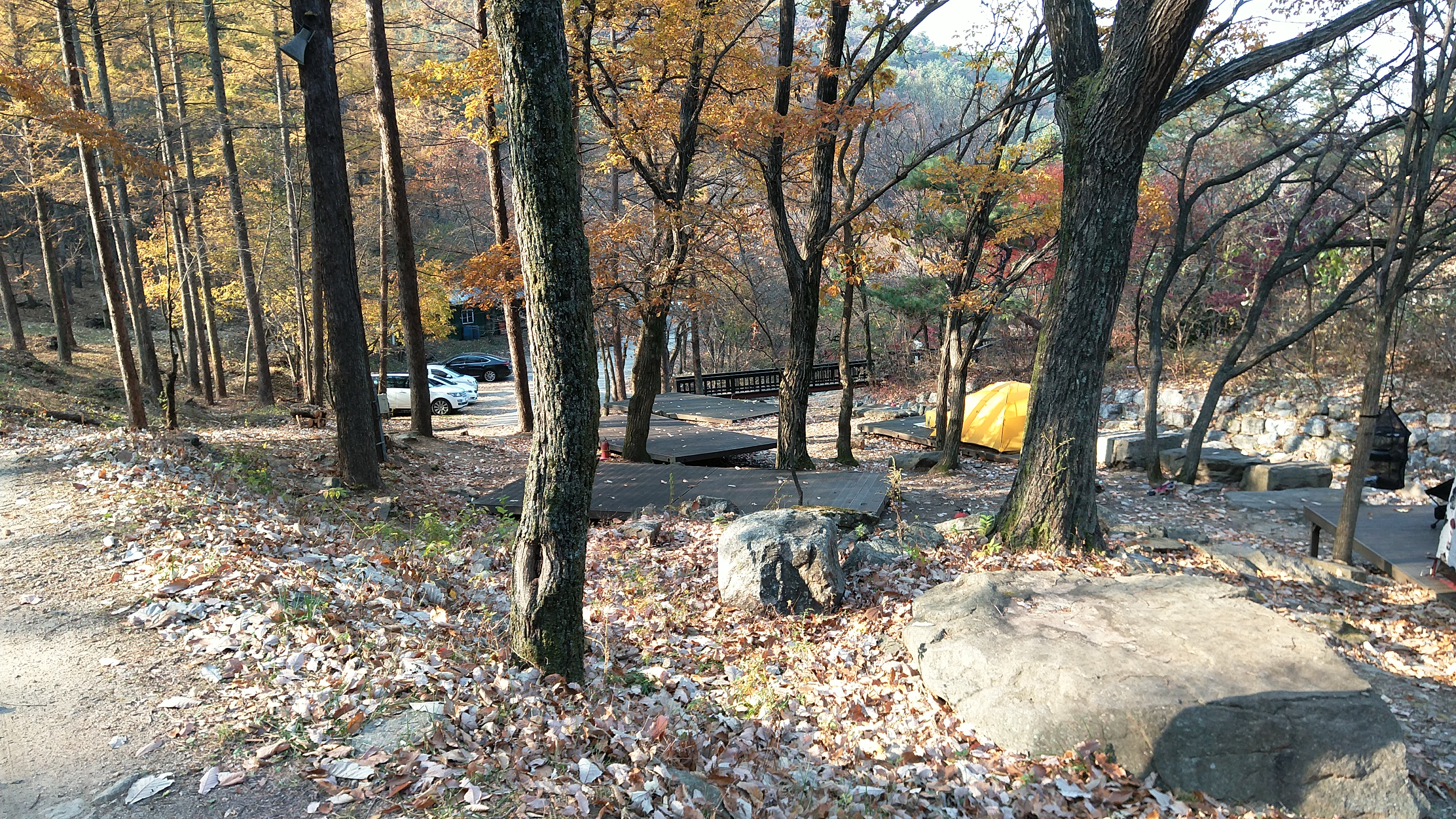 방가로 아래에는 야영데크가 있고 바로 오른쪽에는 계곡이 있지만 흐르는 물양이 적더군요~